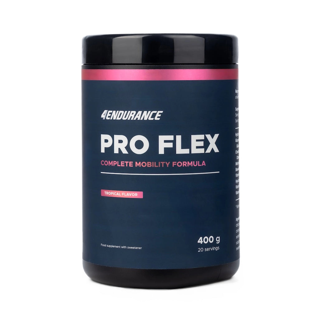 What is Pro Flex?Pro Flex is a joint support supplement for endurance athletes. It combines hydrolyzed collagen (bovine collagen types I and III), MSM, glucosamine, chondroitin, boswellia, and vitamins to support joint health and mobility.