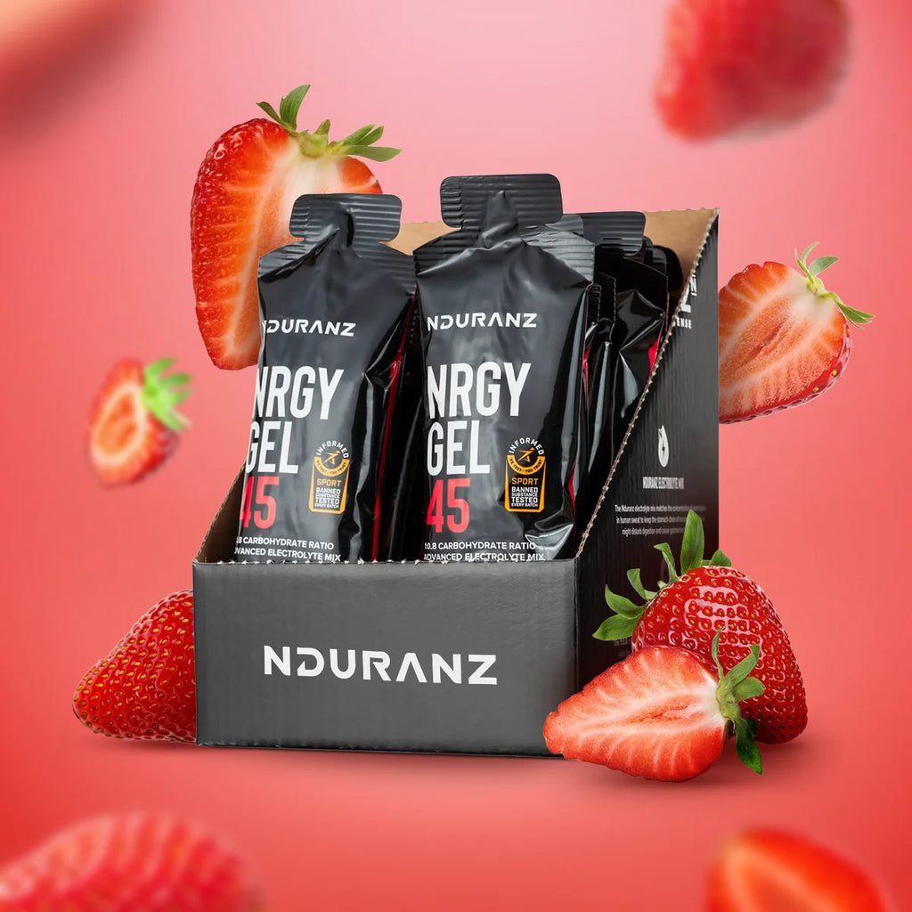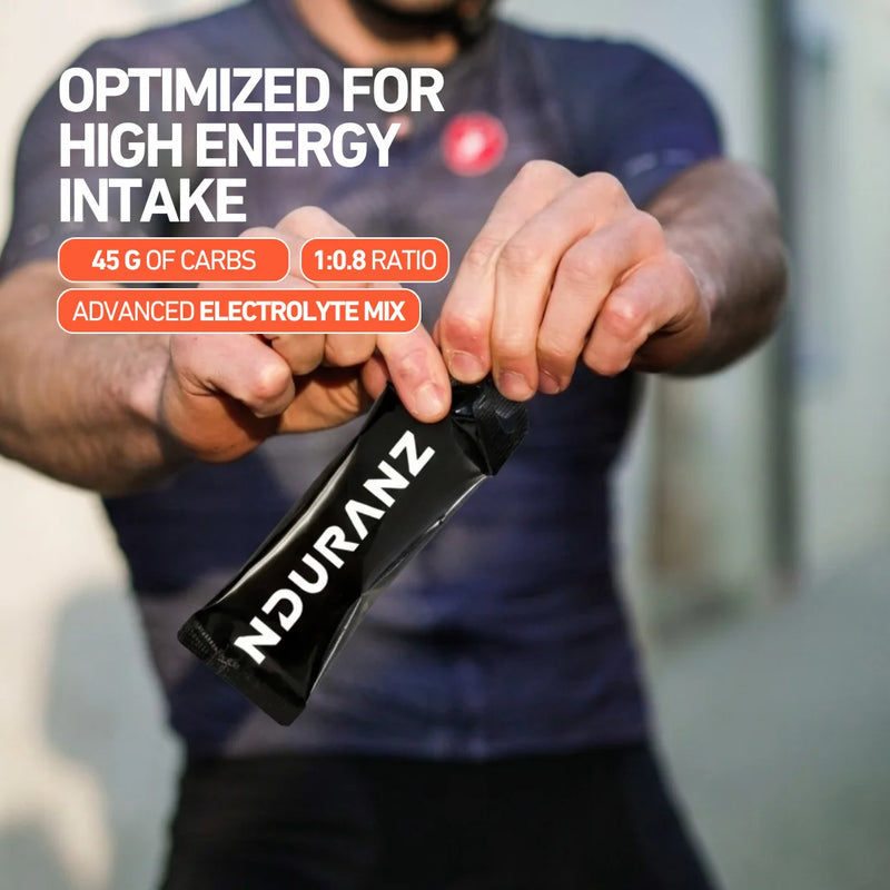Nrgy Gel 45 combines two essential components: the scientifically backed 1:0.8 glucose to fructose ratio for maximum carbohydrate absorption, and the Nduranz Electrolyte Mix, a mineral profile mirroring sweat for optimal hydration.