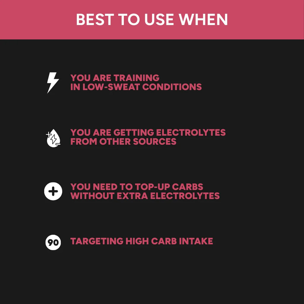 With no electrolytes added, the gel allows athletes to increase carbohydrate intake independently of electrolyte intake. This is ideal for athletes who already meet their electrolyte needs through drinks, capsules, or other gels, or when sodium losses are minimal.