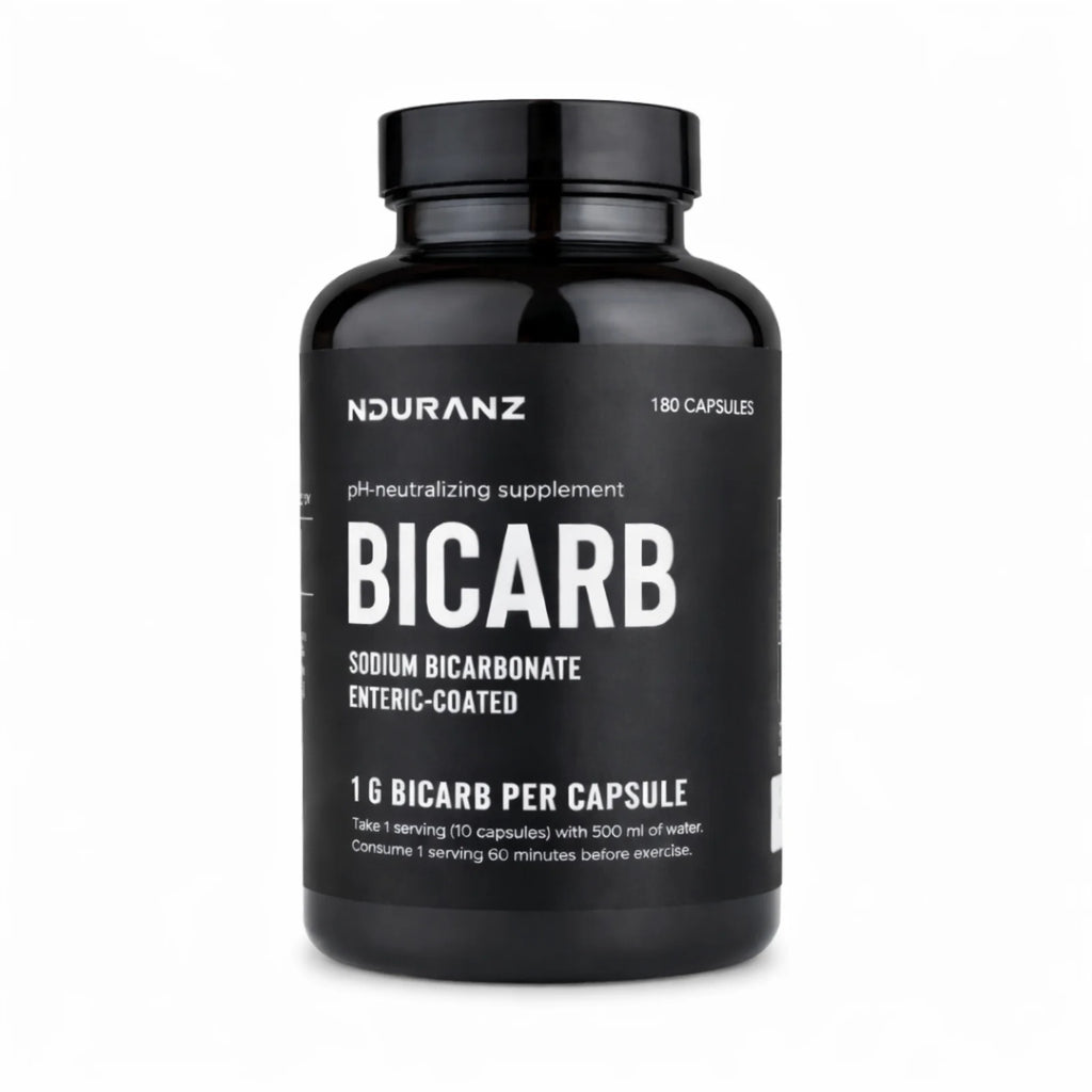 Sodium bicarbonate capsules help you load up on sodium bicarbonate before training or a race, thus increasing your sprint endurance through lower muscle acidity.