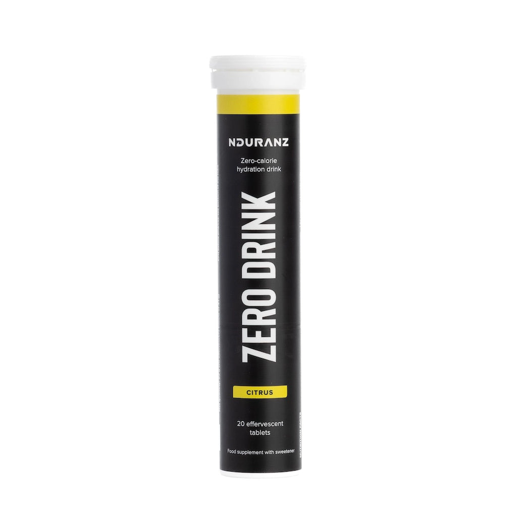Zero Drink effervescent tablets provide the Nduranz Electrolyte Mix in practical and easy-to-carry packaging, so you can stay optimally hydrated wherever you go.